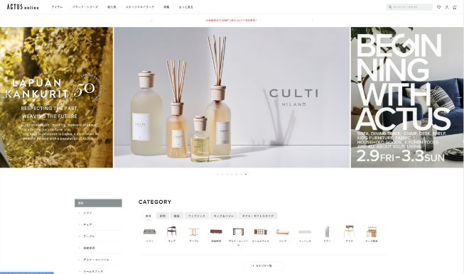 アクタスの家具、照明、雑貨、テキスタイルをECサイトで販売する「ACTUS online」の運営を行っています。